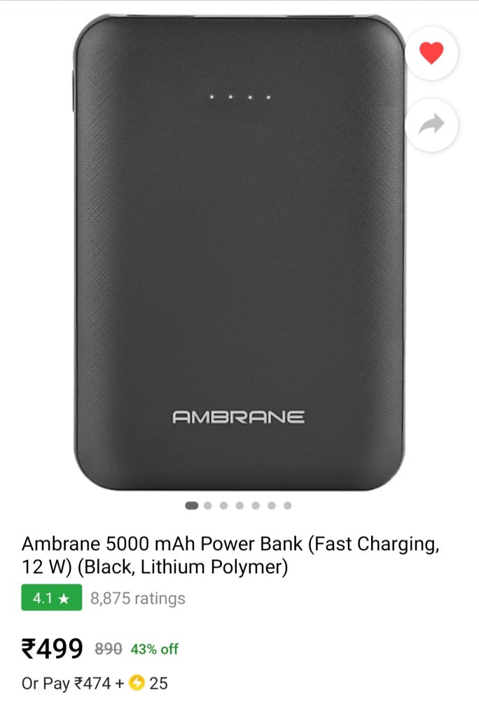 Here is the link to purchase: Ambrane 5000 mAh Power Bank (Fast Charging, 12 W)