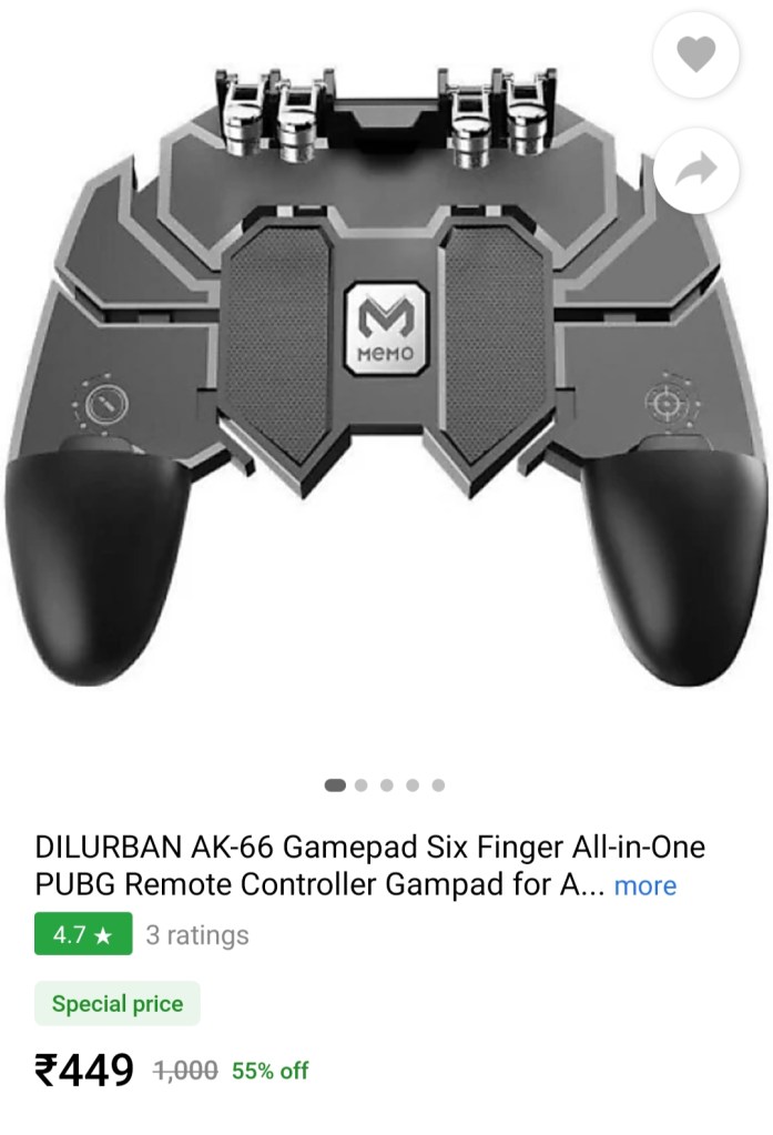 Here is the link to purchase: DILURBAN AK-66 Gamepad Six Finger All-in-One PUBG Remote Controller Gampad for All Android & iOS Mobile Phones Gamepad